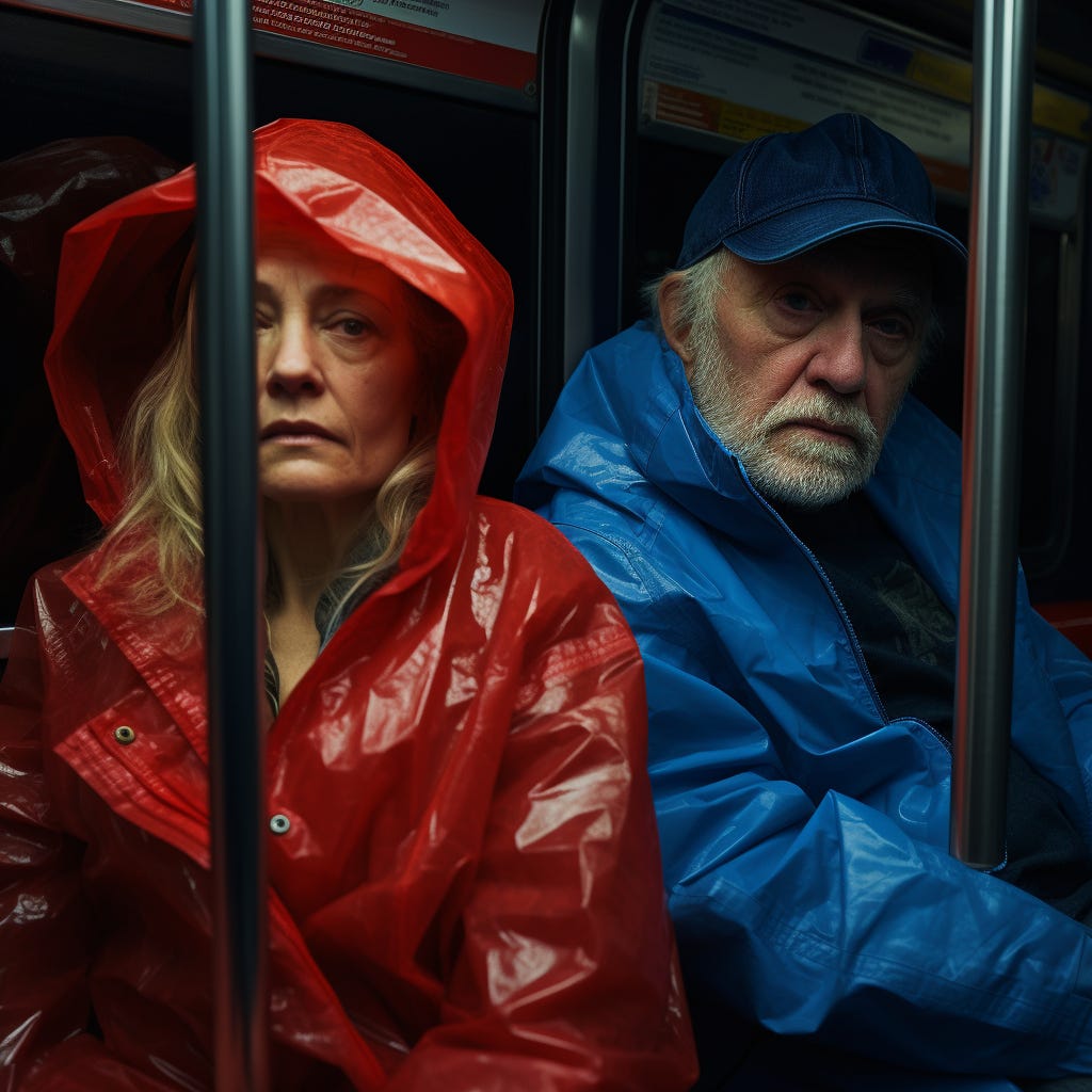 The woman doesn’t seem to mind a chat either. She looks to be in her sixties, as does the man, though she is a bit more colorful in her red rain jacket with a hood, curled blonde to graying hair, and red lips that make the cool blue eyes leap out of her face. The man, if you ignore the web of thread veins on and around his nose, has a pleasant face and wears a smart navy blue rain jacket with a hood. Rain is something you can rely on here.